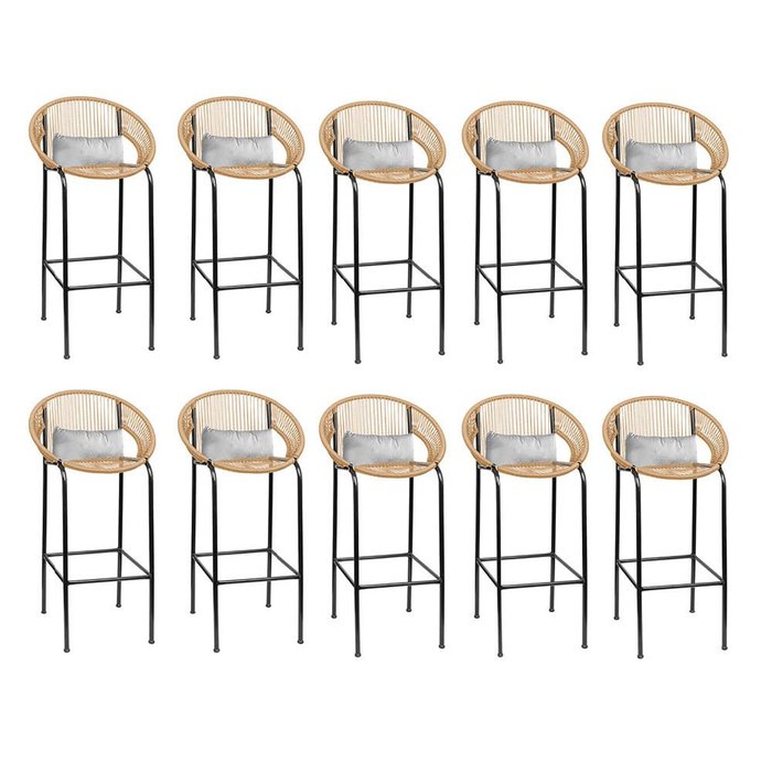 Kit 10 Banqueta Alta Com Encosto Acapulco Lux Fibra Sintética Palha e Almofada Sintético Branco