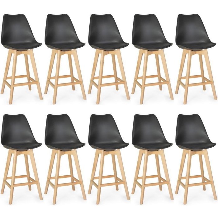 Kit 10 Banqueta Alta Leda Base Madeira com Encosto - Preto