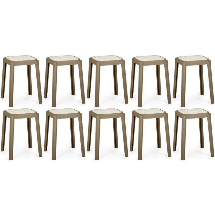 Kit 10 Banqueta Baixa Roma em Polipropileno - Cinza Escuro/branco