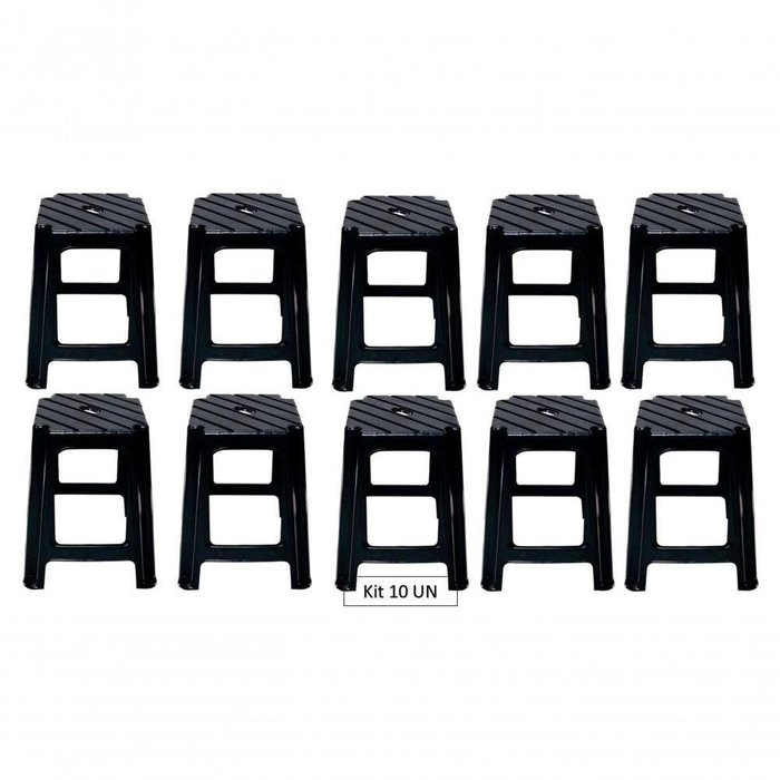 Kit 10 Banquetas Banquinhos De Plástico Resistente Preto Inoplast