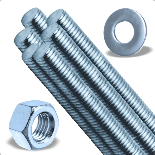 - Conteúdo do Kit: 10 Barras roscadas de 1 metro, 100 porcas sextavadas e 100 arruelas lisas zincadas;