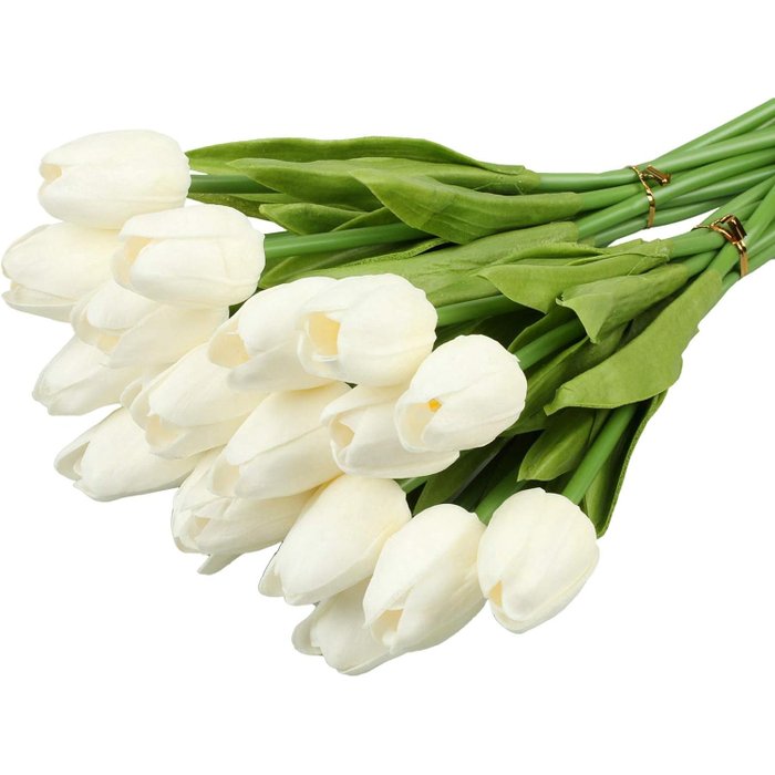 Kit 10 Buque Hastes Flores Tulipas Real Ao Toque Branco