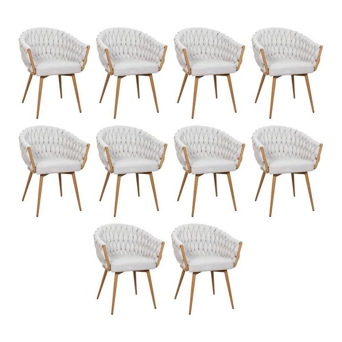 Kit 10 Cadeira de Aproximação Eloá Estrutura Aço Carbono Laminado Natural com Estofado Linho Cru