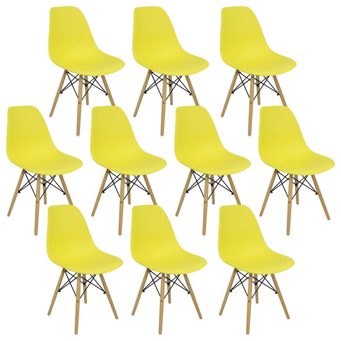 Kit 10 Cadeiras Charles Eames Eiffel Wood Design Amarelo Amarelo