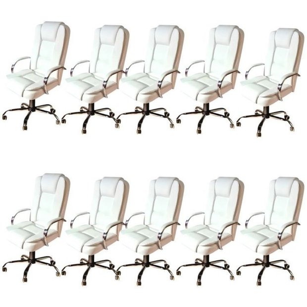 Kit 10 Cadeiras de Escritório Presidente em Corino Base Cromada Euro Branco