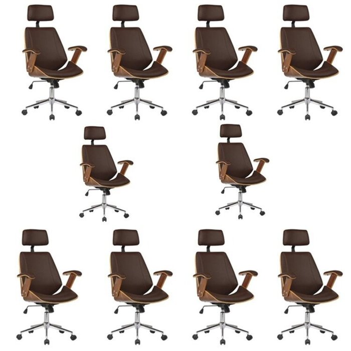 Kit 10 Cadeiras de Escritório Presidente Giratória com Apoia Cabeça Office Lisboa Marrom