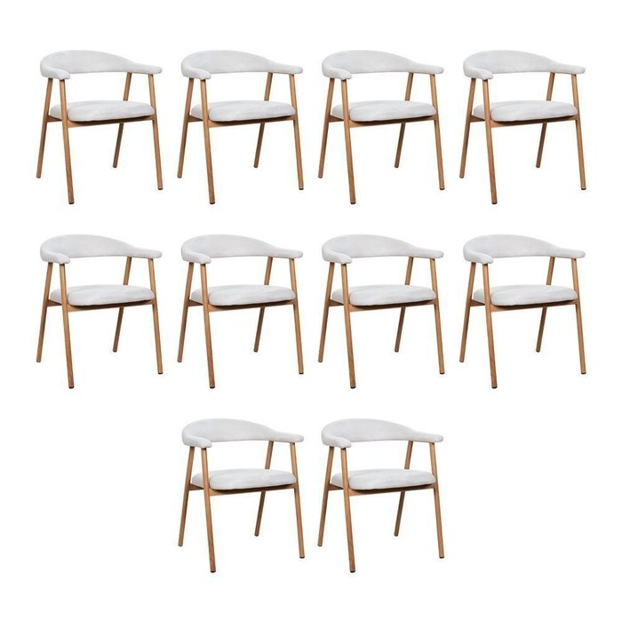 Kit 10 Cadeiras De Jantar Luana Estrutura Aço Carbono Laminado Natural Com Estofado Linho Cru