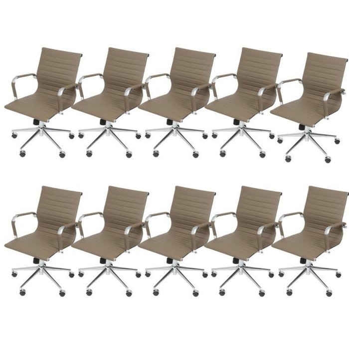 Kit 10 Cadeiras Escritório Diretor Esteirinha Rodízio Relax Corino 3301 Fendi