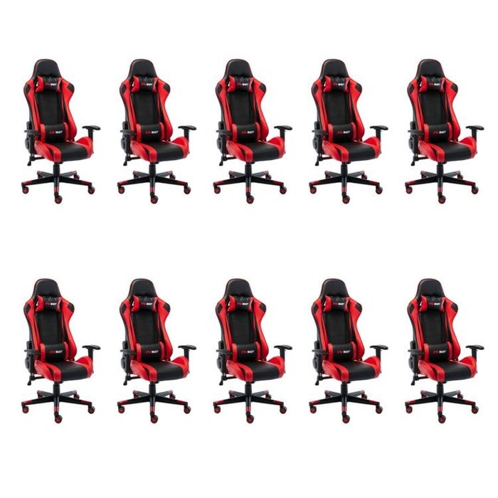 Kit 10 Cadeiras Gamer Giratória One Shot Preto/Vermelho