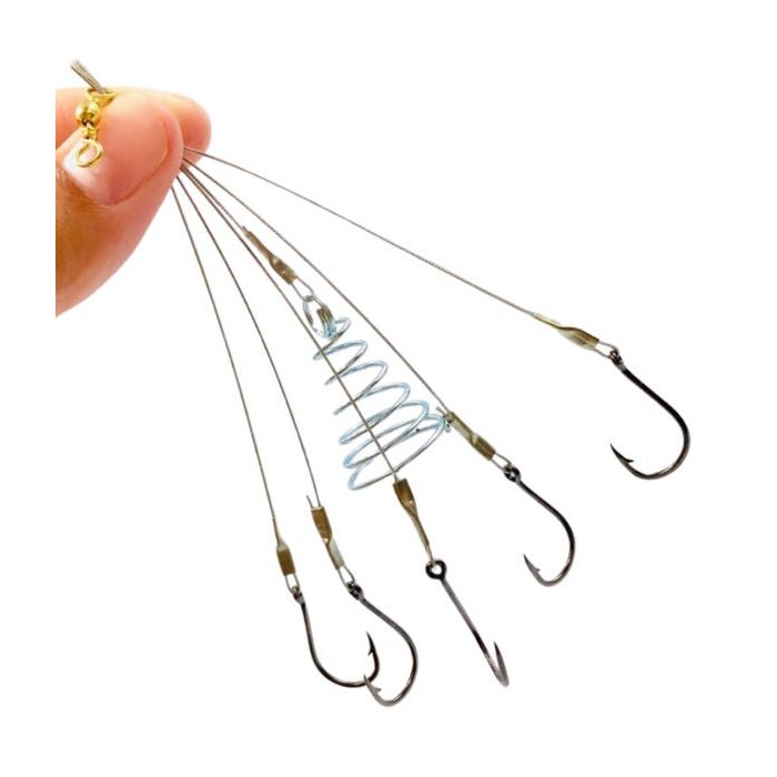 Chuveirinho para pesca de tilapia, curimba, pacu e outros peixes com 5 anzóis chinú e haste em cabo de aço flexível.