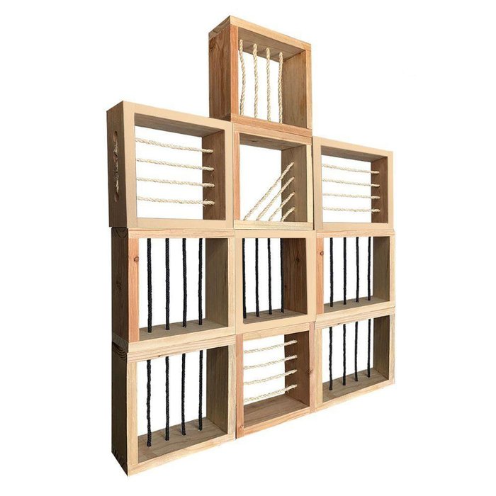 Kit 10 Cobogós Paris Madeira Maciça - Borda Natural Elemento Vazado Sisal - Marrom
