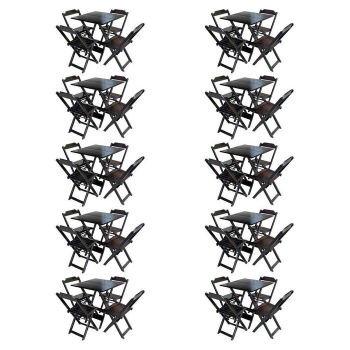 Kit 10 Conjuntos De Mesa Com 4 Cadeiras De Madeira Dobravel 70X70 Tabaco - Marrom Marrom