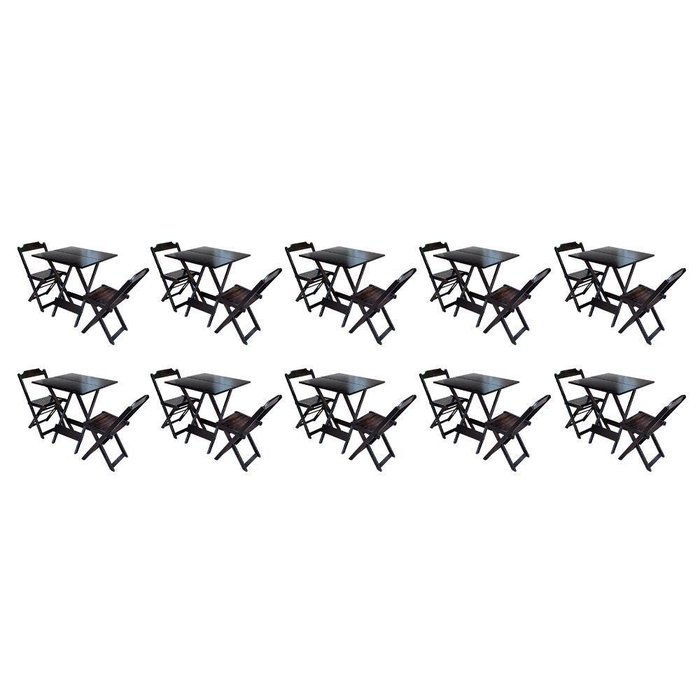 Kit 10 Conjuntos De Mesa Dobravel Com 2 Cadeiras De Madeira 70x70 Ideal Para Bar E Restaurante - Tab