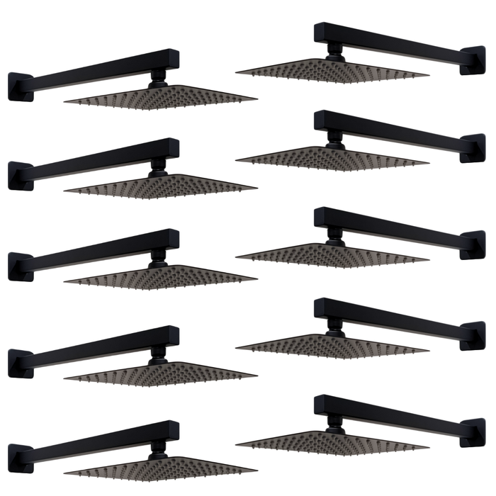 Kit 10 Ducha Quadrada em Inox Preta 20x20 Braço 38 Cm Parede Preta