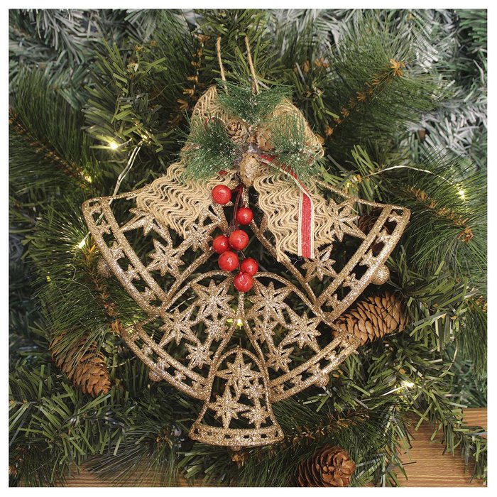 Kit 10 Enfeite Pendente Decoração Natalina Sino Vazado Dourado 25cm Dourado