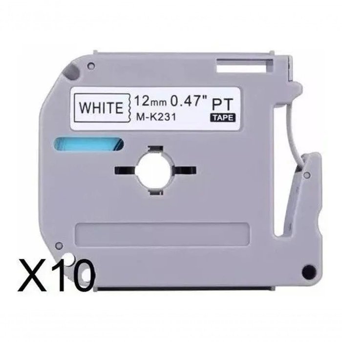 Kit 10 Fita Compatível Brother M231 Mk231 T 12mm Pt 80 70 90 10 Fitas Compatível/Similar Rotulador Brother Branca 12mm Etiqueta na cor Branca com letras na cor pretaCompatível com os modelos abaixo: PT-45, PT-45M, PT45, PT-55, PT-55BM, PT-55S, PT55, PT-65, PT-65SB, PT65, PT-70, PT-70B, PT-70BM, PT70, PT-80, PT-80EU, PT80, PT-85, PT85, PT-90, PT90, PT-100, PT100, PT-110, PT110 ** Etiqueta na cor Branca com letras na cor preta** Fita Compatível com M-231 e MK-231 para rotuladores Brother Letras na cor preta com etiqueta na cor branca 12mmCaracterísticas:-Compativel com os modelos M-231, MK-231, M-K231-Fita Branca com impressão em preto-Largura 12mm-Pode ser usado com todos os rotuladores que aceitam fitas "M" Compatível com os modelos abaixo:-PT-45, PT-45M, PT45-PT-55, PT-55BM, PT-55S, PT55-PT-65, PT-65SB, PT65-PT-70, PT-70B, PT-70BM, PT70-PT-80, PT-80EU, PT80-PT-85, PT85-PT-90, PT90-PT-100, PT100-PT-110, PT110