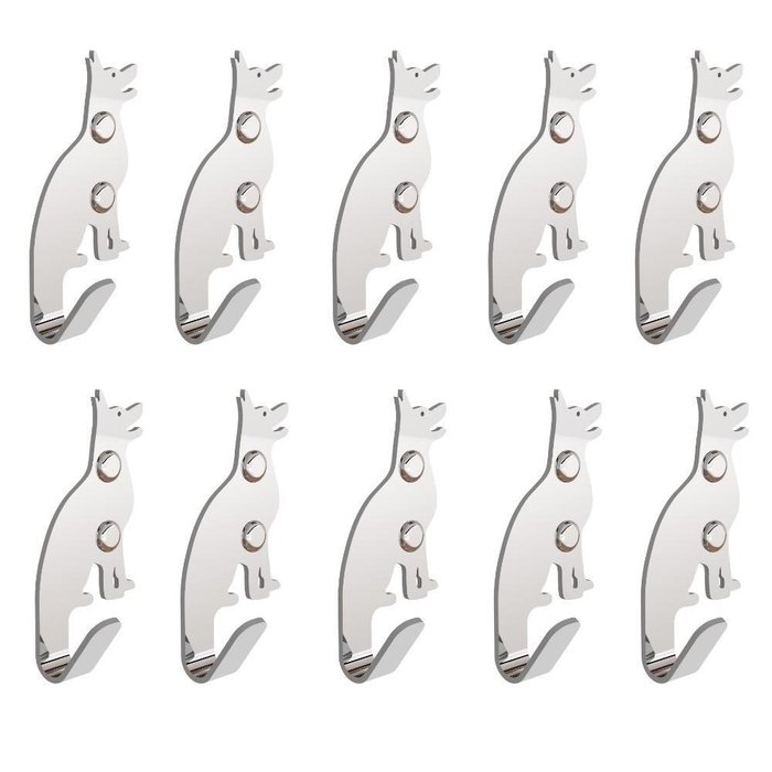 Ninguém gosta de bagunça, não é mesmo?O Kit 10 Ganchos de Parede além de ajudar na organização, também proporciona mais sofisticação para sua casa com seu design moderno e exclusivo.Com ele é possível guardar chaves, blusas, bonés e qualquer objeto que possa ser pendurado. O Design minimalista é uma tendência que chegou para ficar!Os Ganchos de Parede unem o design moderno e minimalista com boa qualidade de acabamento. Fabricado em aço para proporcionar mais resistência e segurança para armazenar seus objetos preferidos.Os ganchos no formato de Cachorro fazem com que seu ambiente fique alegre e com muita personalidade, dando um toque especial no seu lar. BENEFÍCIOSDesign exclusivo no formato de CachorroGancho de aço com corte preciso feito à laser de última geraçãoRecorte das bordas com extrema precisãoDurabilidade maior devido a resistência do material utilizadoAcompanha acabamento para esconder a cabeça dos parafusos de fixaçãoMaior resistência de peso nos ganchos de CachorroNível de instalação: FácilModo de instalar: Furar a parede e parafusar os ganchos. ESPECIFICAÇÕES TÉCNICASMaterial do Gancho: Aço 1020Cor/Acabamento: Cromado MEDIDASLargura: 1cmAltura: 2,5cmComprimento: 7cm CONTEÚDO DA EMBALAGEM10 Ganchos no formato de CachorroParafusos com BuchasTampas de acabamento para esconder as cabeças dos parafusos *OBS: Os objetos decorativos não acompanham o produto.
