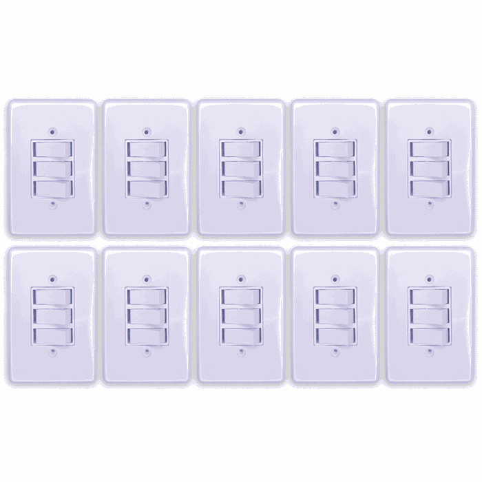Kit 10 Interruptor 2 Teclas Paralelas + 1 Tecla Simples Ilumi 6a 250v Cor:branco branco