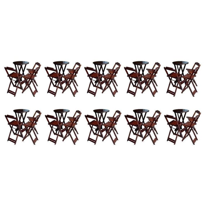 Kit 10 Jogos De Mesa Bistrô De Madeira Dobrável Com 3 Banquetas - Imbuia