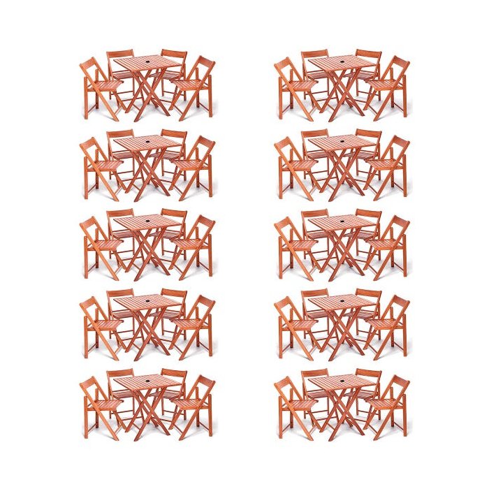 Kit 10 Jogos de Mesas com 4 Cadeiras de Madeira Dobrável Gourmet Premium Luxo Mogno com Suporte para Ombrelone