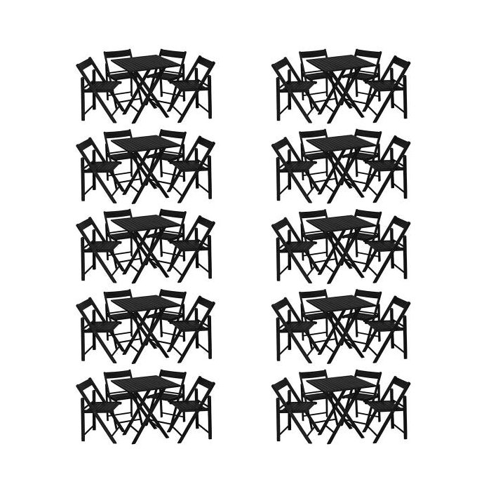 Kit 10 Jogos Mesa com 4 Cadeiras Dobrável Gourmet Beer Preto/Black