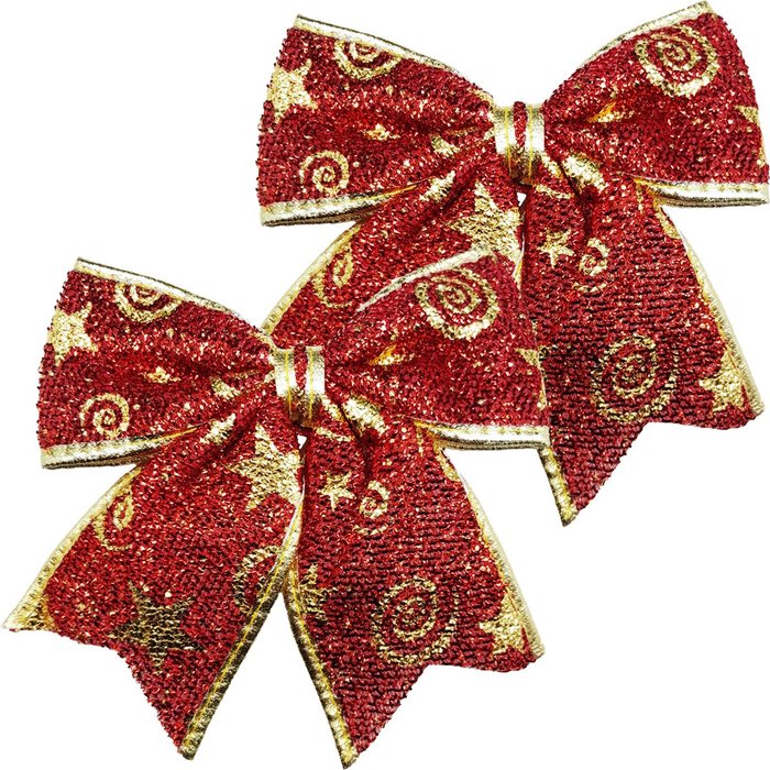 Kit 10 Laços Enfeite Decorativo Árvore Natal Vermelho 28cm Vermelho; Dourado