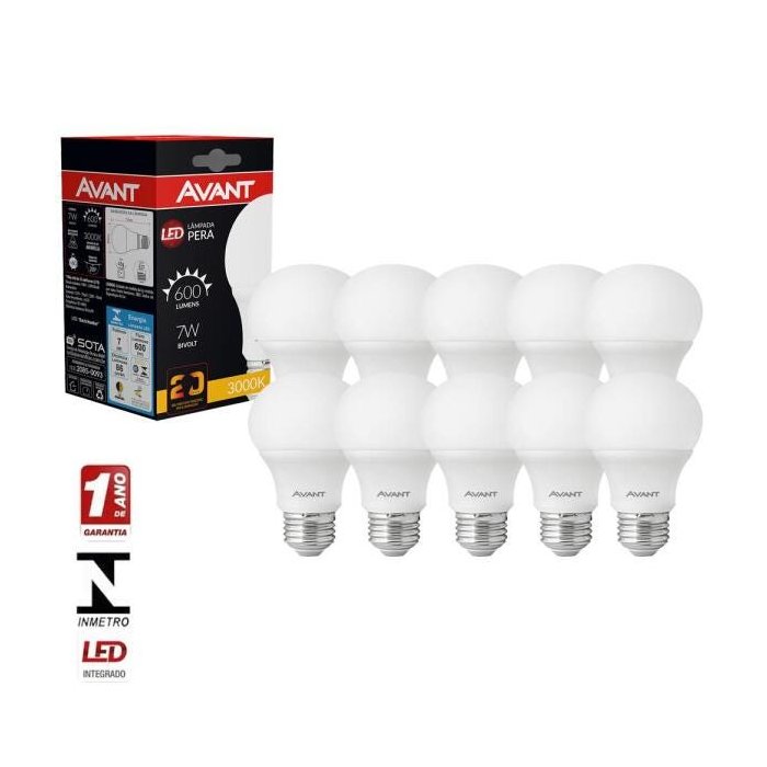Com certificação do INMETRO e com selo PROCEL as Lâmpadas Avant são uma ótima escolha para a iluminação da sua casa ou loja. As Lâmpadas modelo Pera da Avant são Bivolt e contam com uma abertura de até 200º. Aumente a vida útil da sua iluminação, uma lâmpada com tecnologia LED dura até 4 vezes mais que as tradicionais.