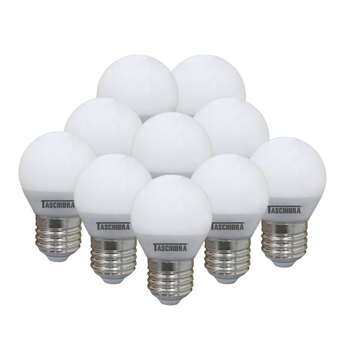 Kit com 10 Lâmpadas Taschibra LED Bolinha G45 TBL 40 Leitosa 4,8W 2700K luz Branco Quente