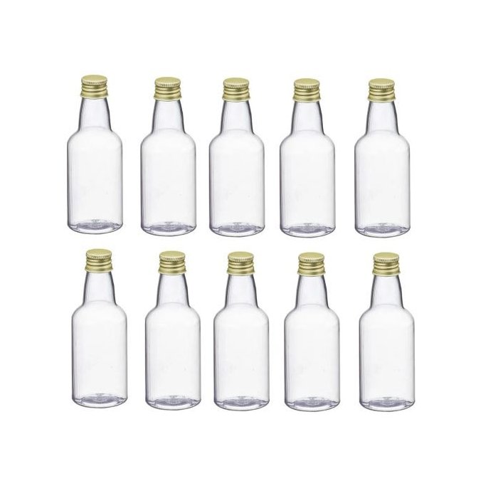 Kit 10 Mini Garrafinhas de Plástico 30Ml com Tampas de Metal Dourada