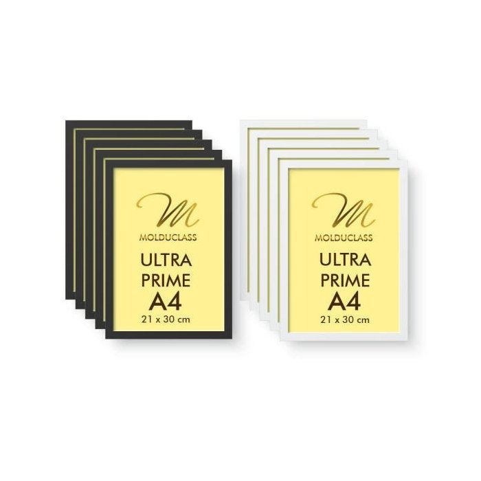 Kit 10 Molduras A4 Pretas Brancas Vidro Antirreflexo Quadro