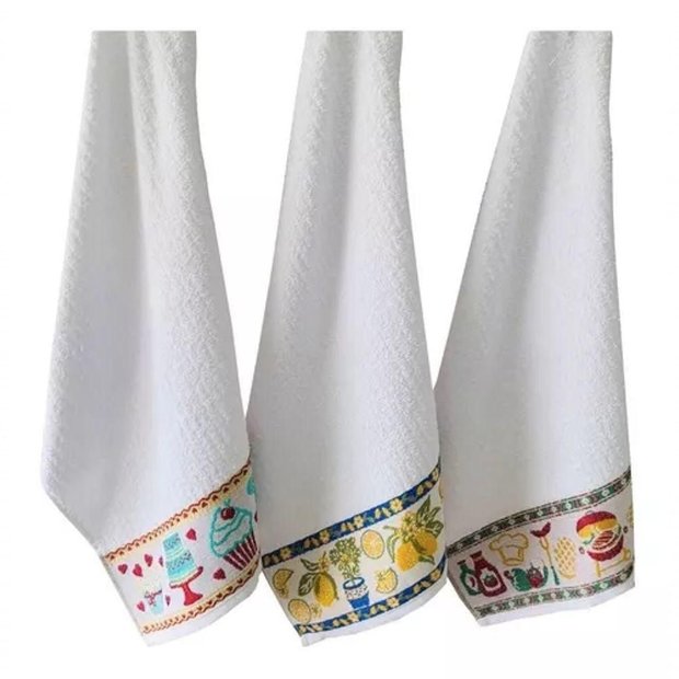 Kit 10 Pano de Prato Atoalhado Pano de Copa Toalha de Copa Branco