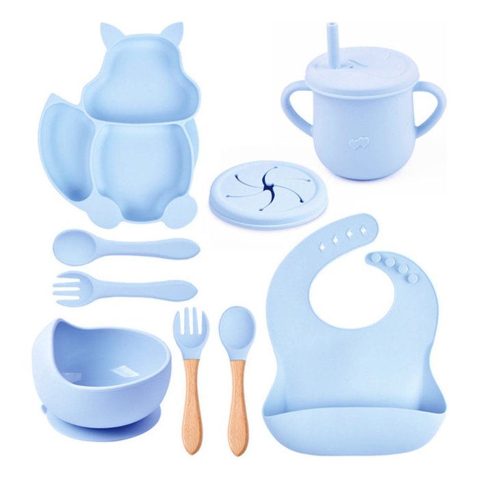 Kit 10 Pçs Alimentação para Bebê Silicone Infantil Ventosa Azul Azul