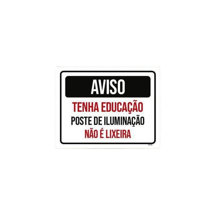 Kit 10 Placas Aviso Tenha Educação Poste Iluminação Lixo