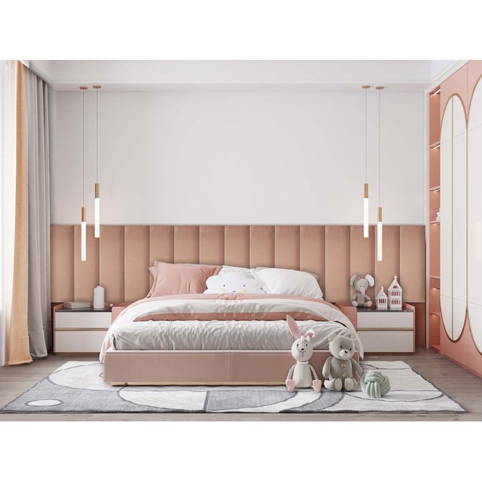 Kit 10 Placas Cabeceira Estofada para Cama King - Módulo 20 Cm X 60 Cm:rosa