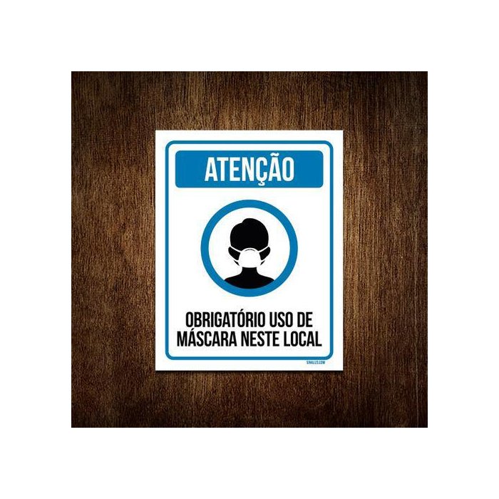 Kit 10 Placas Obrigatório Uso Máscara Neste Local - Informações do Produto: Placas decorativas fabricadas com poliestireno de alto impacto (PSAI) de 2mm e adesivo vinil automotivo de alta performance. - Medidas: 36cm x 46cm - Fixação: Todas as placas possuem adesivo dupla face para aplicação em qualquer tipo de superfície lisa. Garantia de 12 meses e disponibilidade imediata.