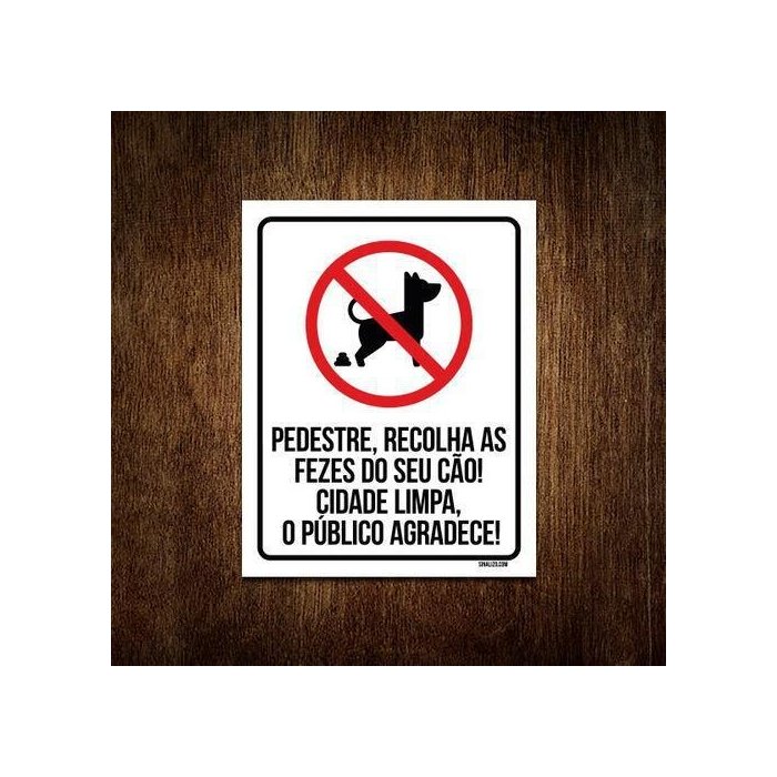 Kit 10 Placas Pedestre Recolha Fezes Cão Calçada Limpa