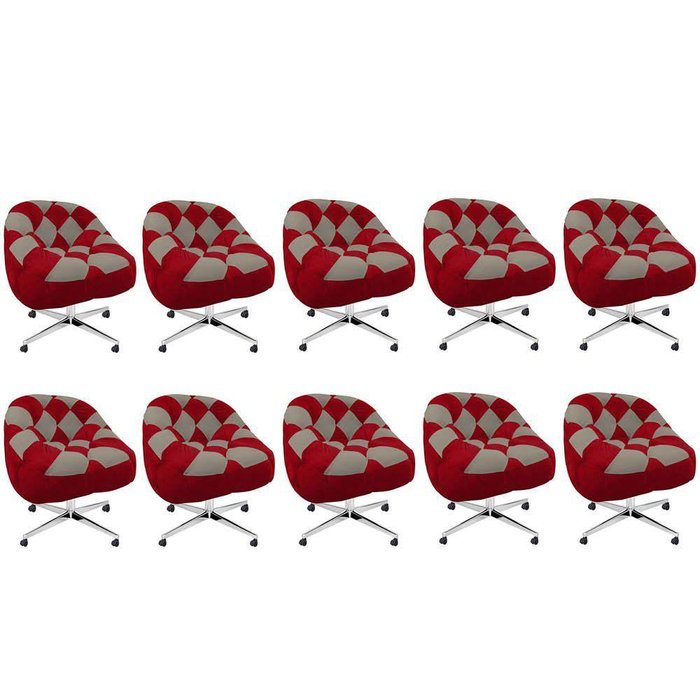 Kit 10 Poltrona Paloma Escritório Sala Giratória Metal Rodízio Sintético Vermelho E Sintético Cappuccino - Dominic Decor