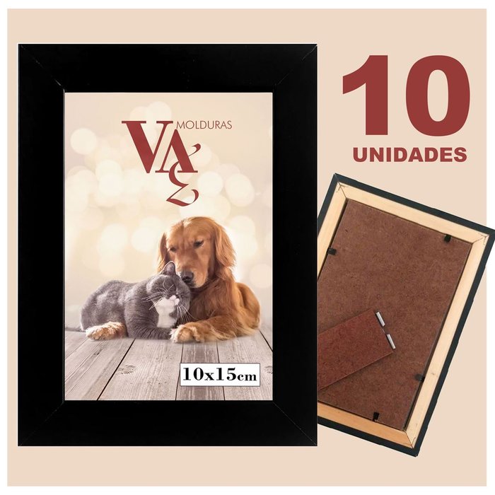 Kit 10 Porta Retrato Preto 10x15 A6 com Vidro - Preto - Tamanho Único
