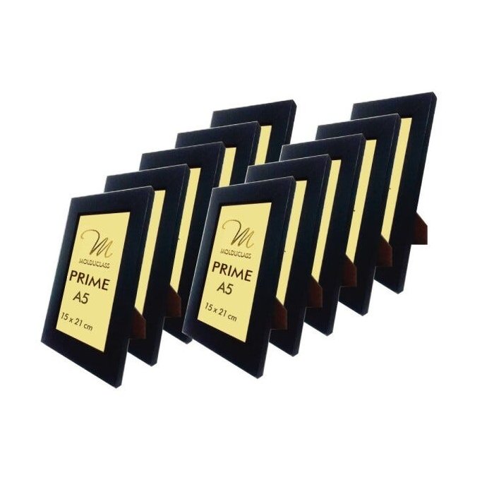 Kit 10 Porta-retratos A5 15x21 moldura Preto Vidro Fotos