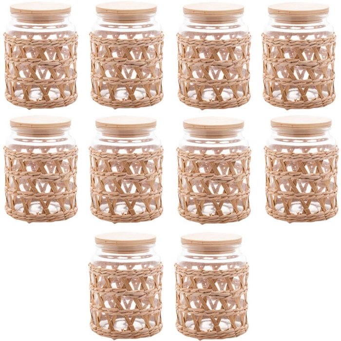 Kit 10 Potes Herméticos Vidro com Sisal Tampa Madeira Wolff 750ml Porta Mantimentos