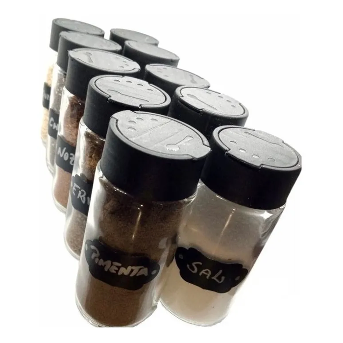 Kit com 10 porta tempero de vidro: você nunca mais vai perder um tempero na cozinha!
