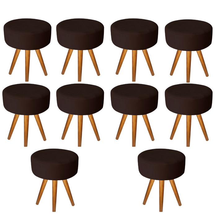 Kit 10 Puff Puf Banqueta Redondo Decorativo Para Sala de Estar e Recepção Corino Marrom -Open Decor