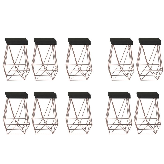 Kit 10 Puffs Luci cor bronze assento preto-GatMagazine GAT MAGAZINE
