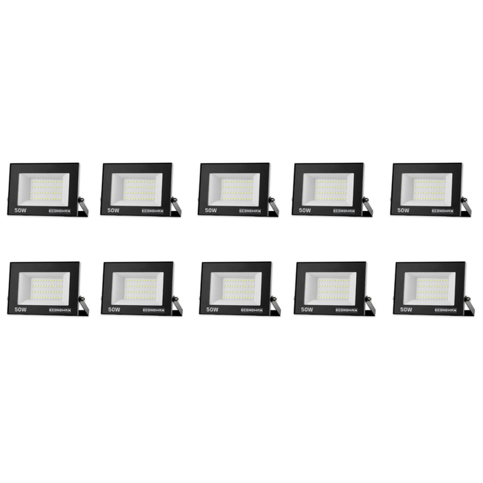 Kit com 10 Refletores Projetores LED 50W Economax Branco Frio 6500K Bivolt - 11cm