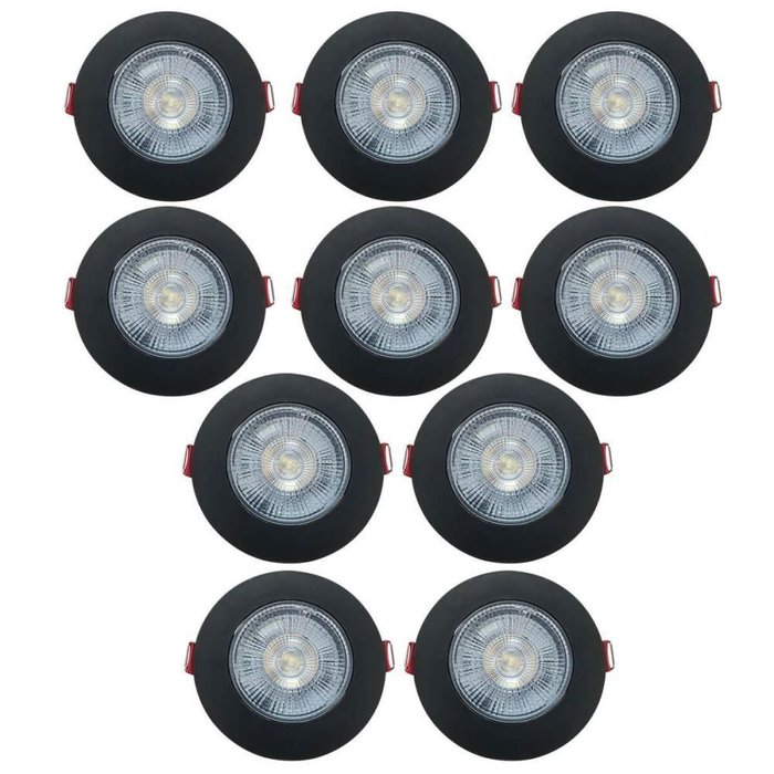 Kit 10 Spots Authentic Led Redondo de Embutir Avant Branco com Corpo Preto Fosco 5w 6500k - Cód