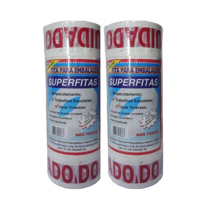 Kit de 10 Unidades Fita Adesiva Branca para embalagens Cuidado/Frágil