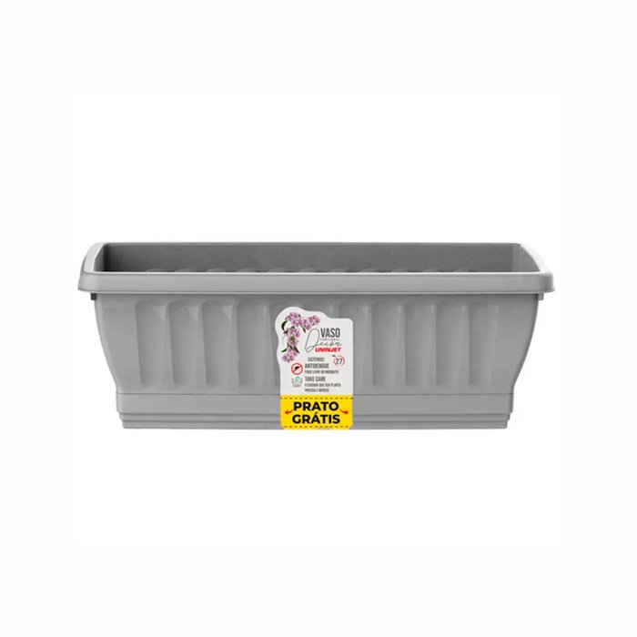 Kit 10 Vasos Jardineiras Plantas Floreira de Janela Prato Uninjet Cinza