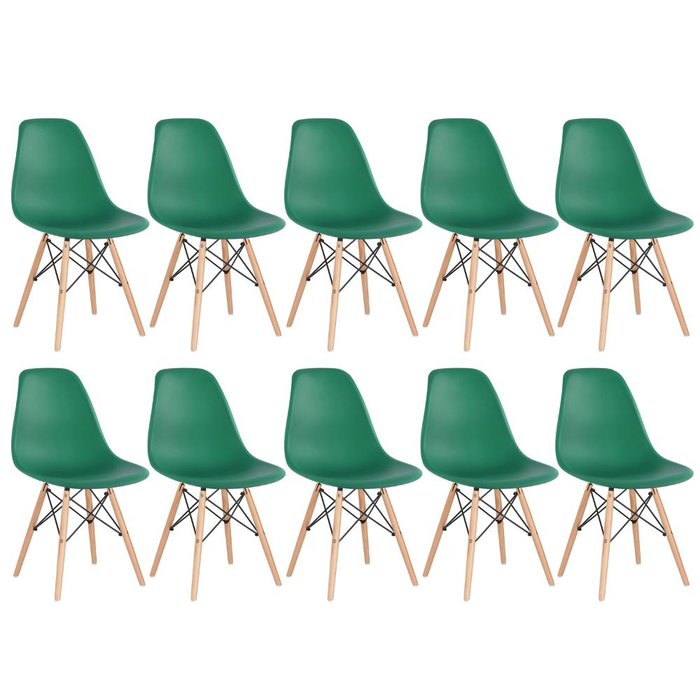 KIT - 10 x cadeiras Charles Eames Eiffel DSW - Base de madeira clara - Verde escuro