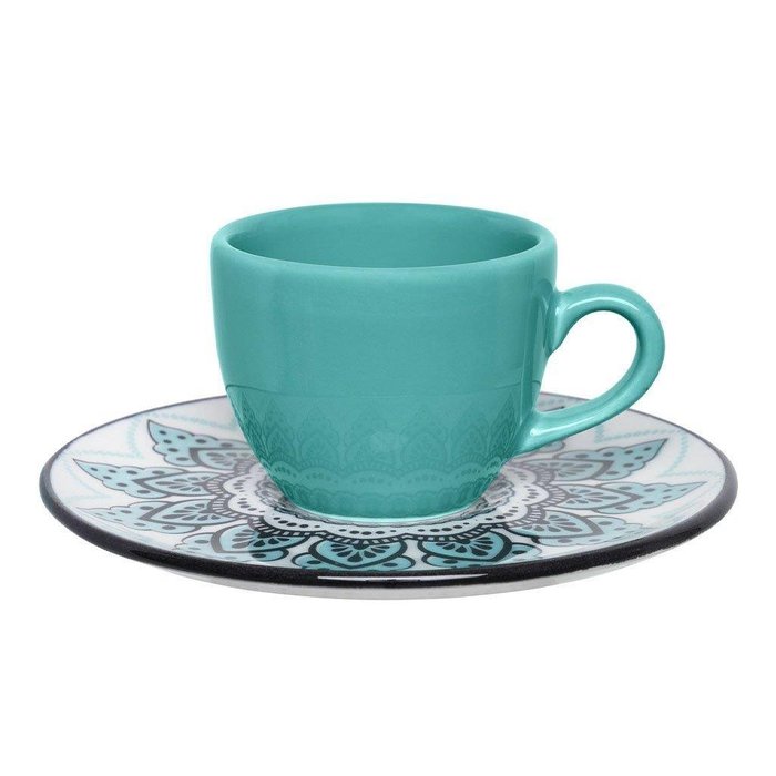 Kit 10 Xícaras Com Pires Coup Serene Oxford Porcelana 200Ml Preto, Verde