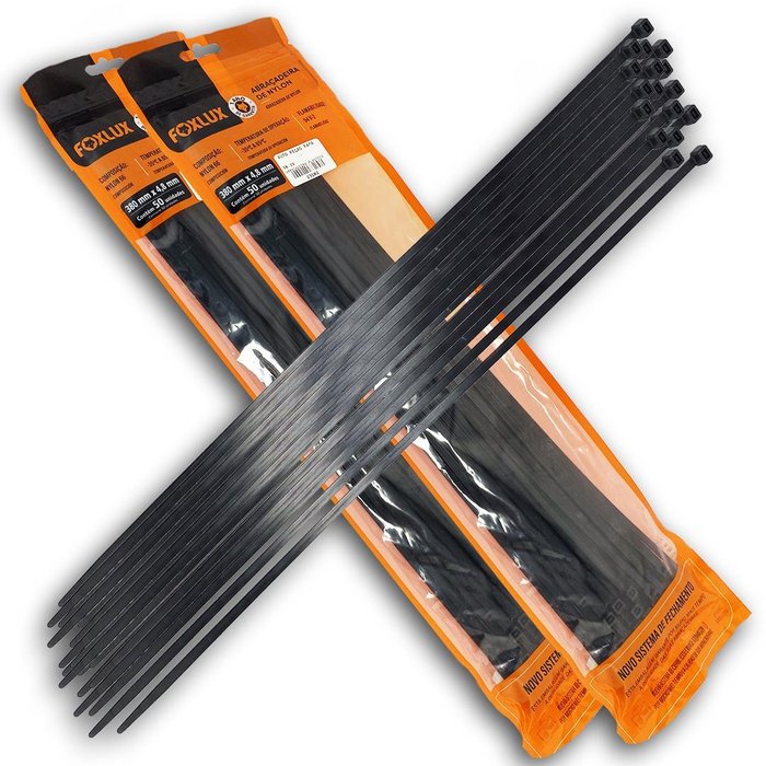 | Modelo | Kit 100 Abraçadeiras De Nylon Preta Foxlux 38Cm X 4,8Mm |